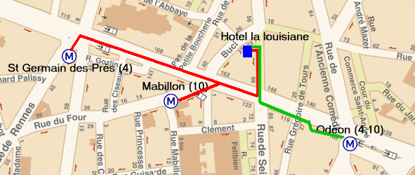 Métro : Odéon (ligne 4, 10), Mabillon (ligne 10)